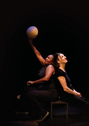 Entre questions philosophiques, confidences, moments ludiques et anecdotes faisant allusion à leurs racines, elles parlent, chantent, jouent et manipulent les éléments de scénographie comme un grand jeu d’objets qui s’emboîtent.